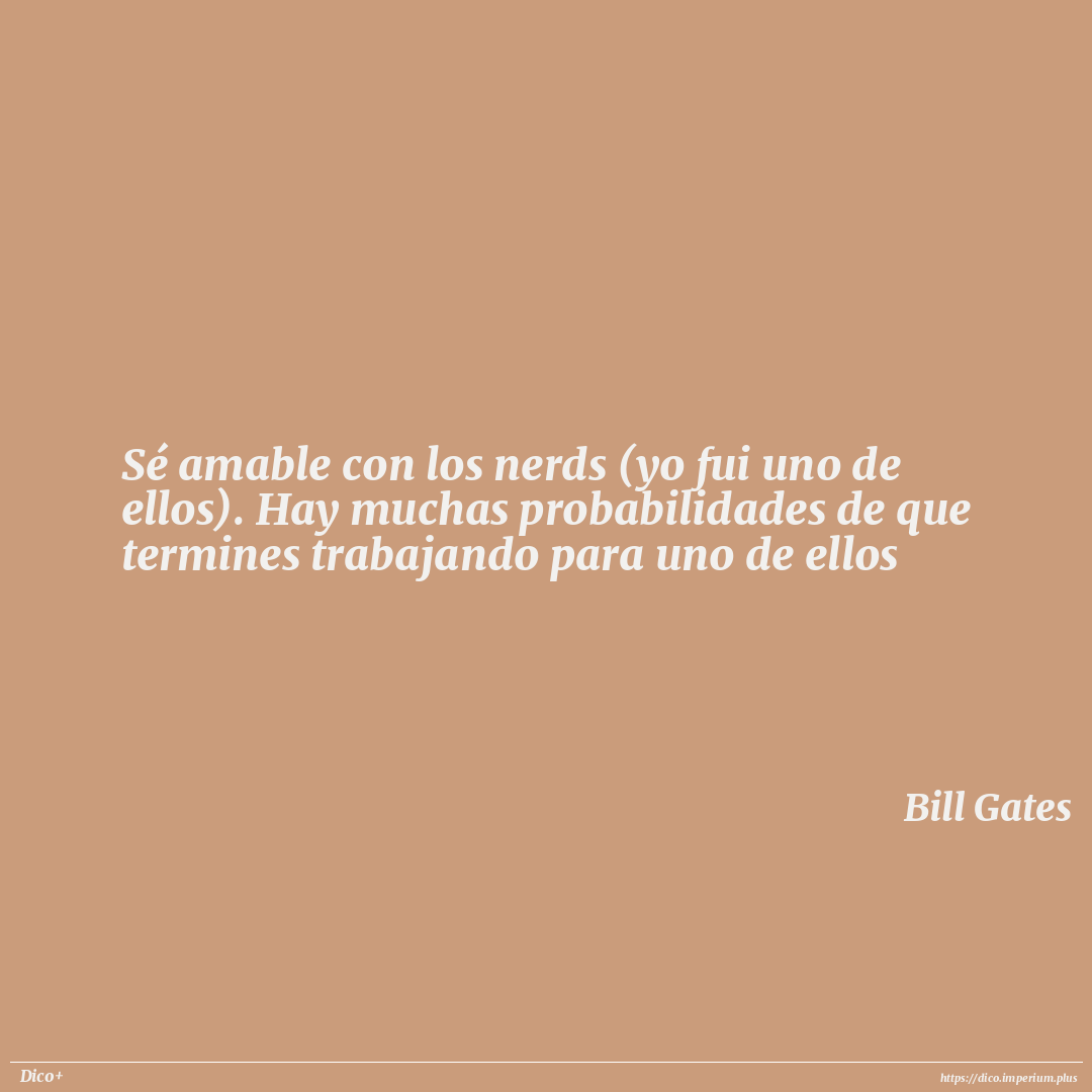 Sé amable con los nerds (yo fui uno de ellos). Hay muchas probabilidades de que termines trabajando para uno de ellos