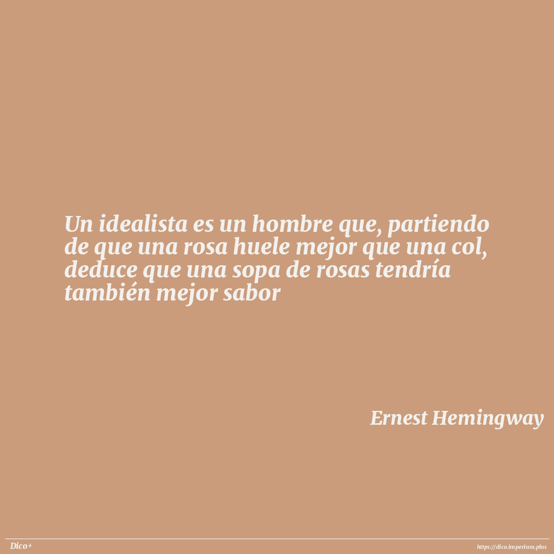 Un idealista es un hombre que, partiendo de que una rosa huele mejor que una col, deduce que una sopa de rosas tendría también mejor sabor