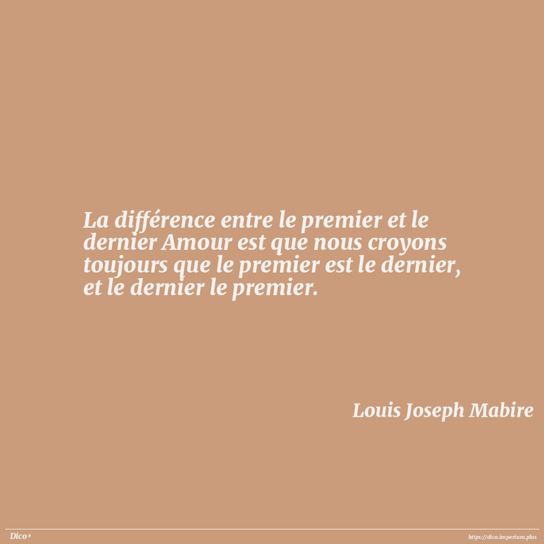 La différence entre le premier et le dernier Amour est que nous croyons toujours que le premier est le dernier, et le dernier le premier.