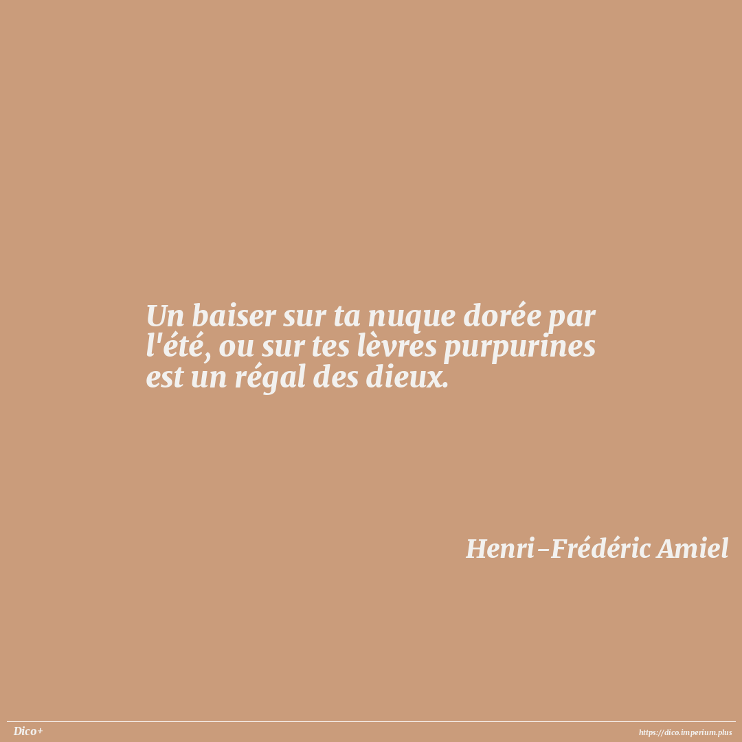 Un baiser sur ta nuque dorée par l'été, ou sur tes lèvres purpurines est un régal des dieux.