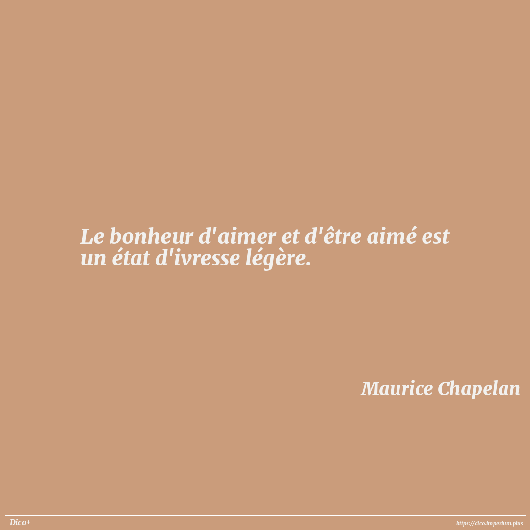Le bonheur d'aimer et d'être aimé est un état d'ivresse légère.