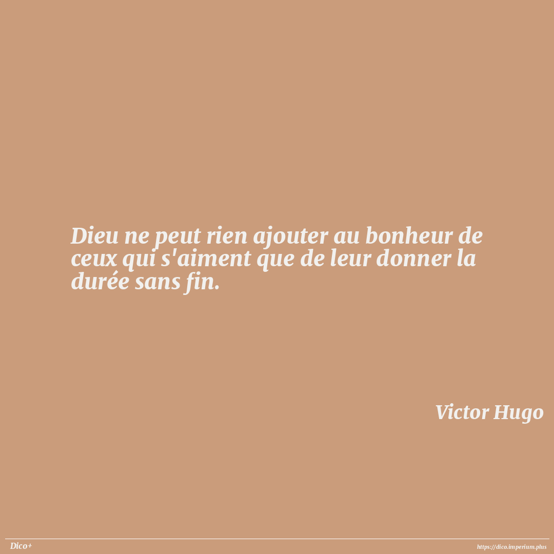 Dieu ne peut rien ajouter au bonheur de ceux qui s'aiment que de leur donner la durée sans fin.