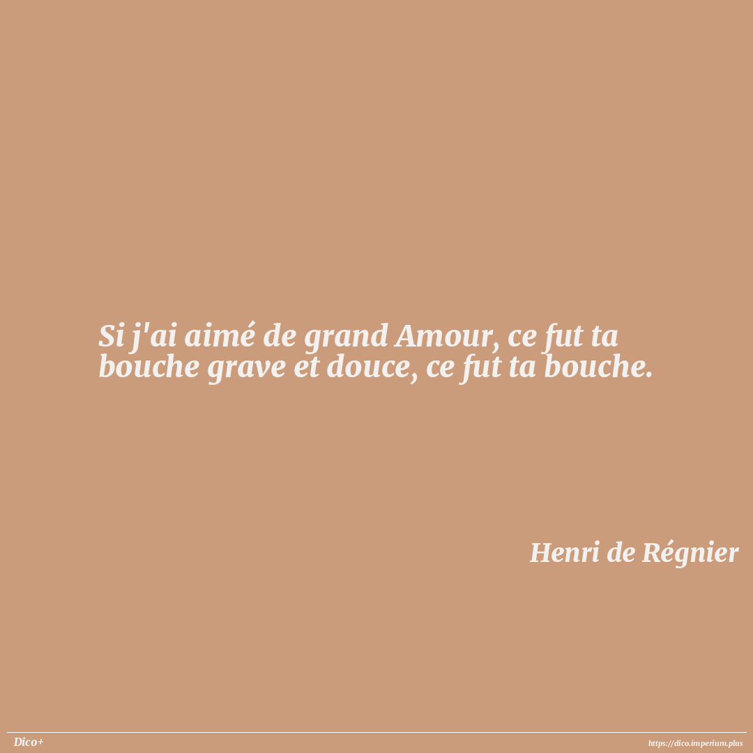 Si j'ai aimé de grand Amour, ce fut ta bouche grave et douce, ce fut ta bouche.