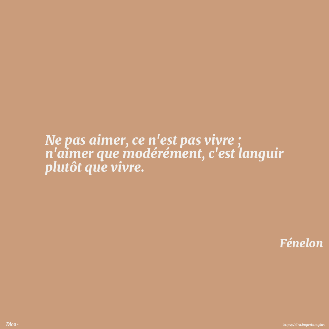 Ne pas aimer, ce n'est pas vivre ; n'aimer que modérément, c'est languir plutôt que vivre.