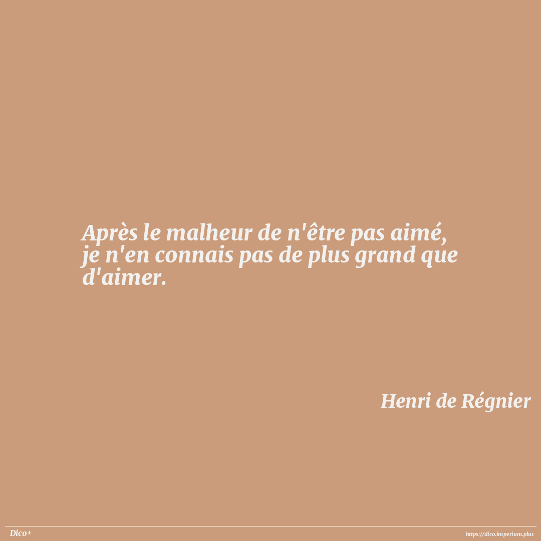Après le malheur de n'être pas aimé, je n'en connais pas de plus grand que d'aimer.