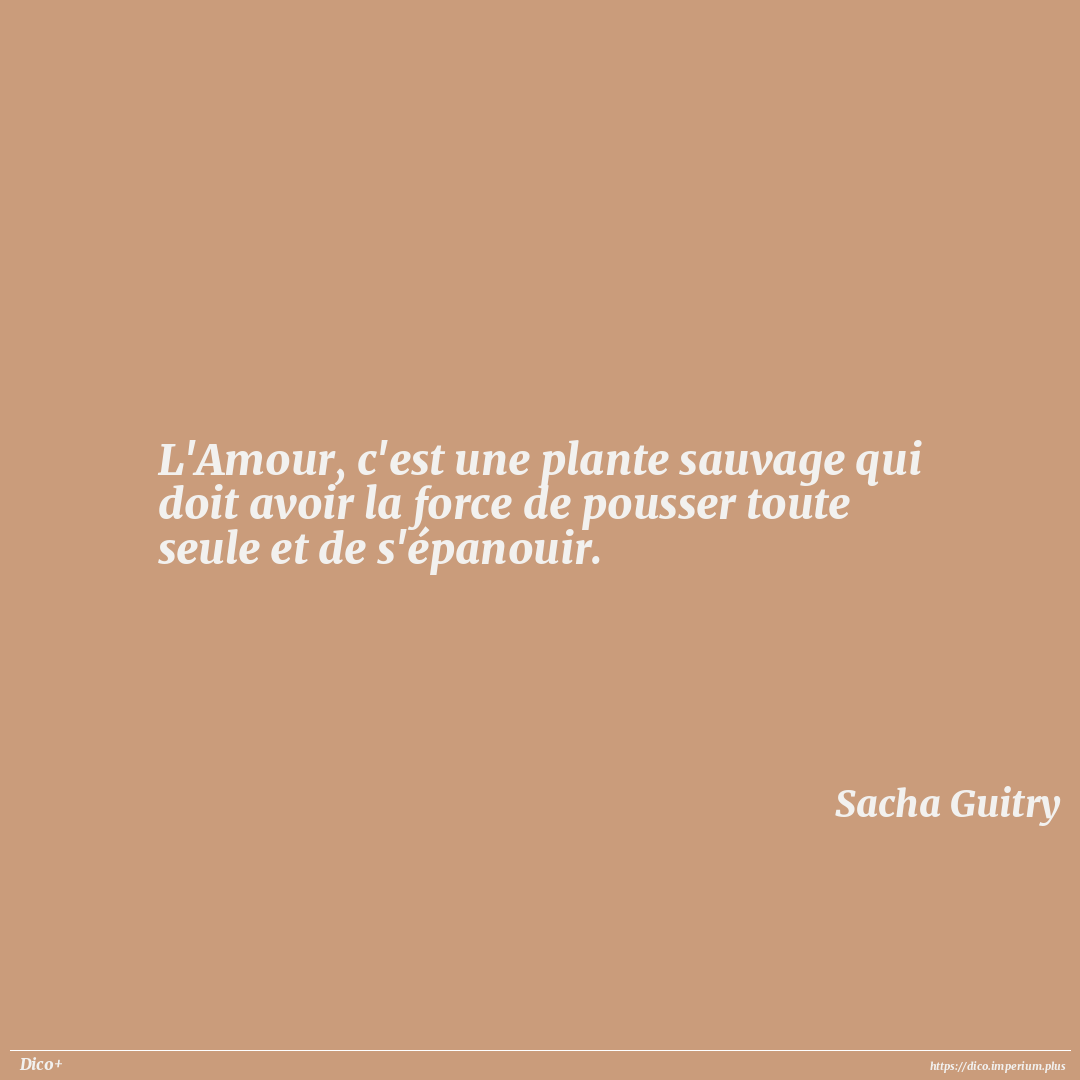 L'Amour, c'est une plante sauvage qui doit avoir la force de pousser toute seule et de s'épanouir.