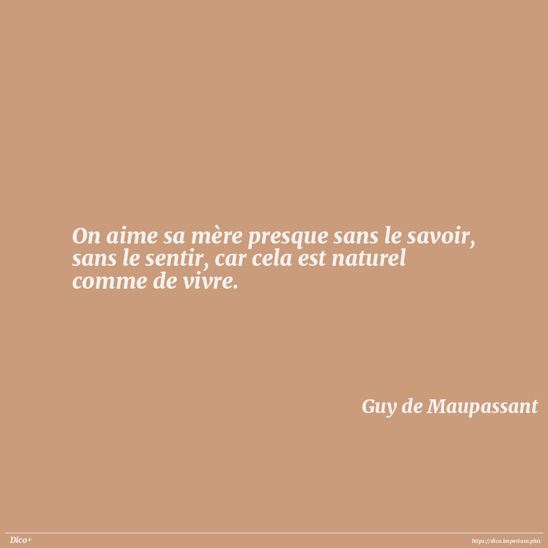 On aime sa mère presque sans le savoir, sans le sentir, car cela est naturel comme de vivre.