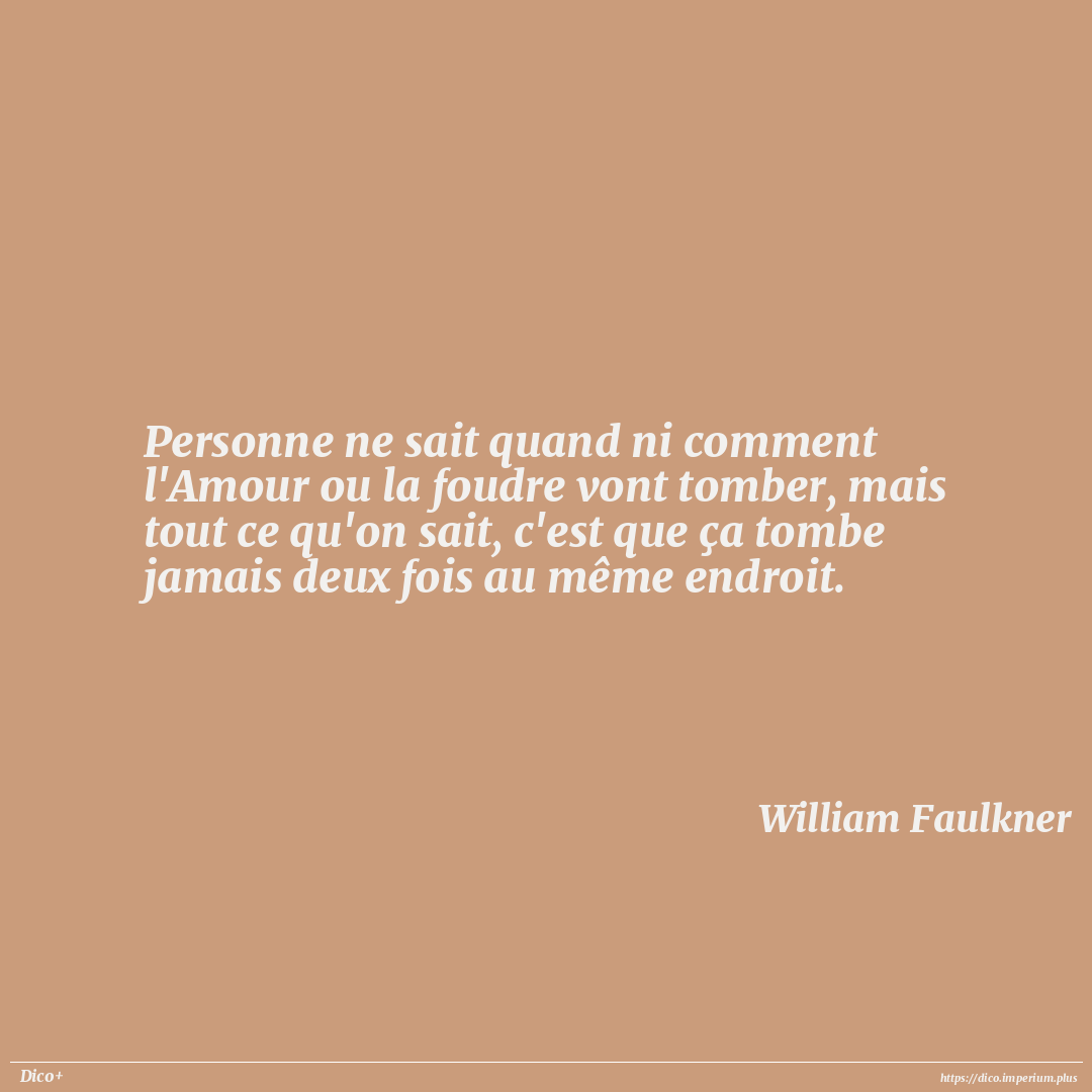 Personne ne sait quand ni comment l'Amour ou la foudre vont tomber, mais tout ce qu'on sait, c'est que ça tombe jamais deux fois au même endroit.