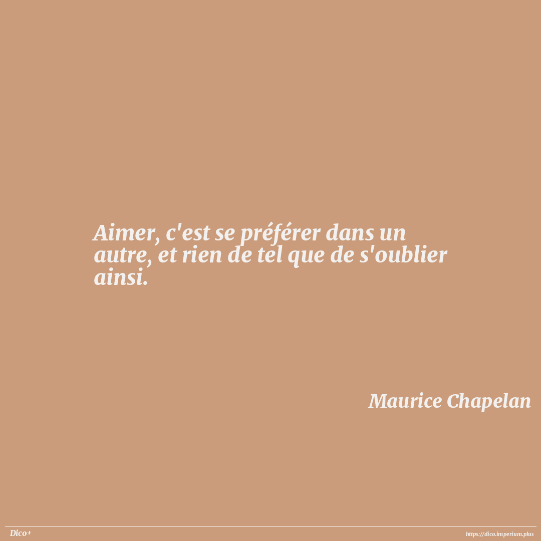 Aimer, c'est se préférer dans un autre, et rien de tel que de s'oublier ainsi.