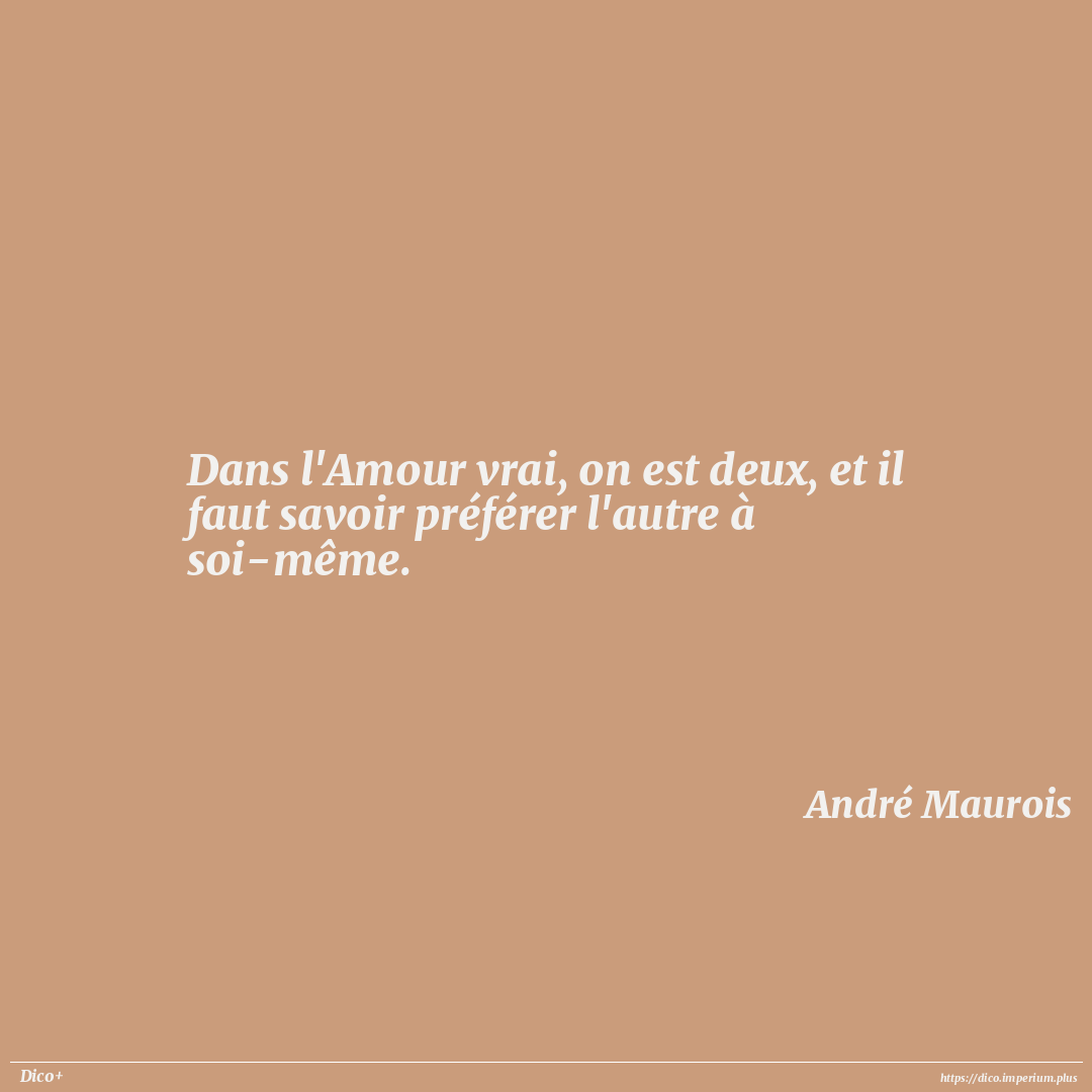 Dans l'Amour vrai, on est deux, et il faut savoir préférer l'autre à soi-même.
