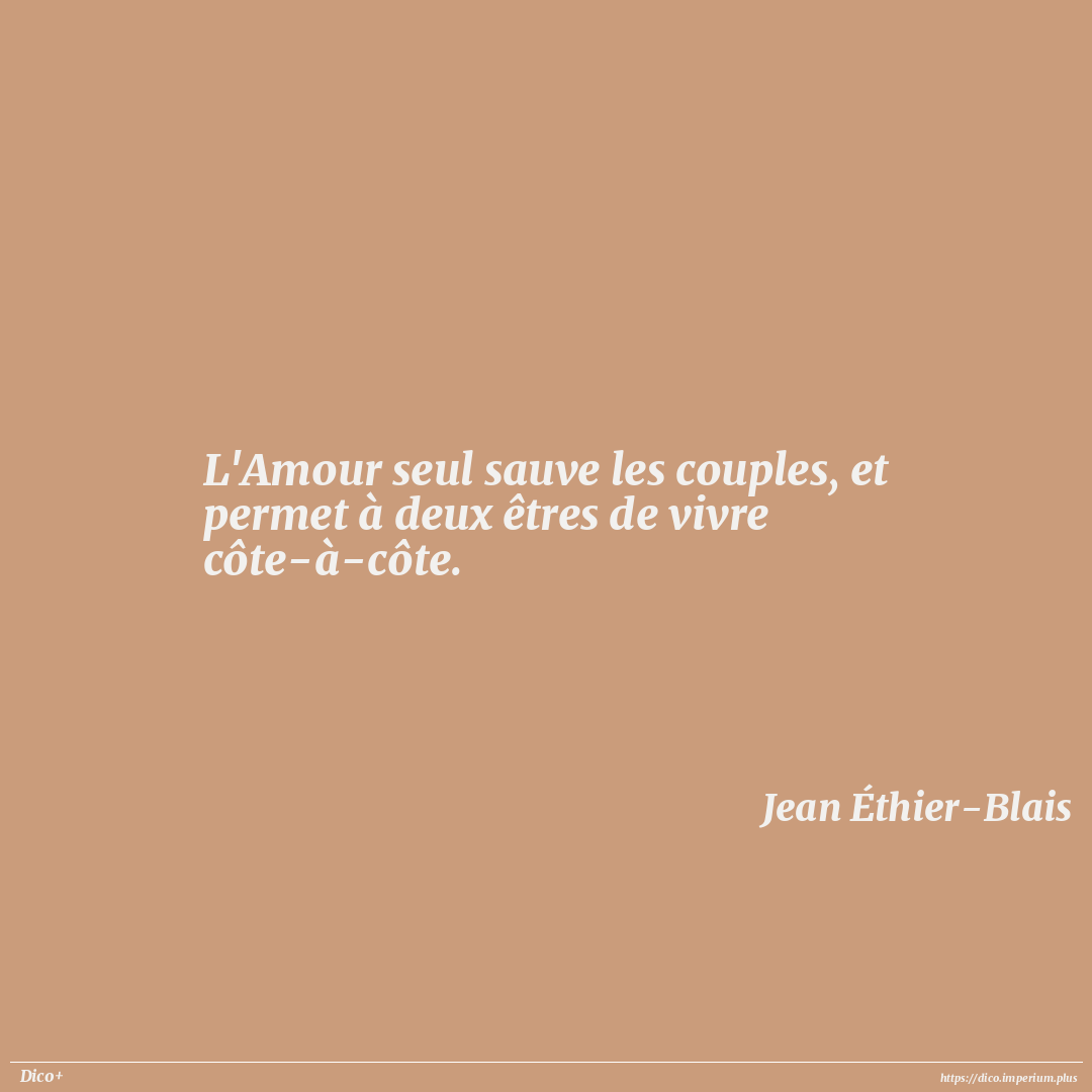 L'Amour seul sauve les couples, et permet à deux êtres de vivre côte-à-côte.