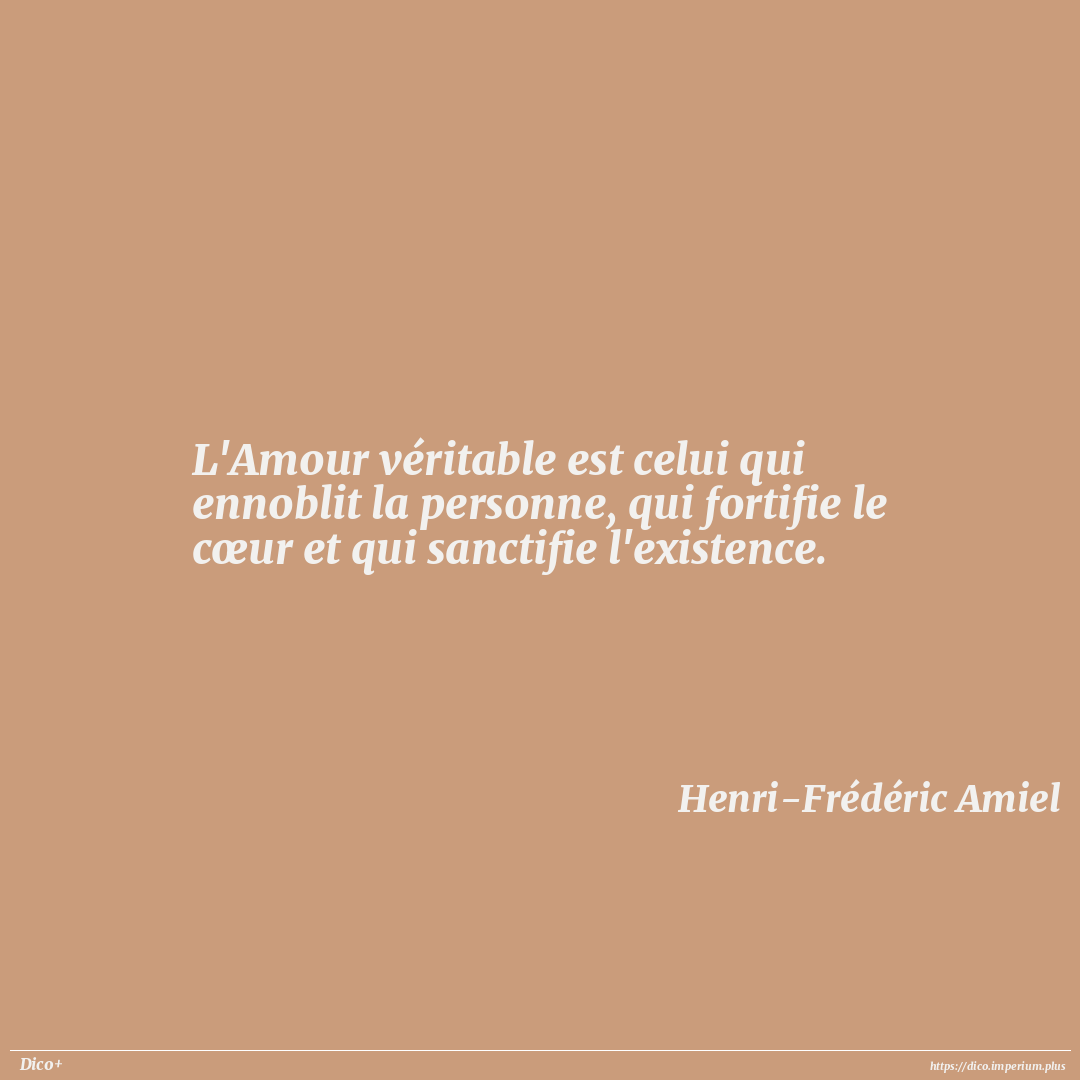 L'Amour véritable est celui qui ennoblit la personne, qui fortifie le cœur et qui sanctifie l'existence.