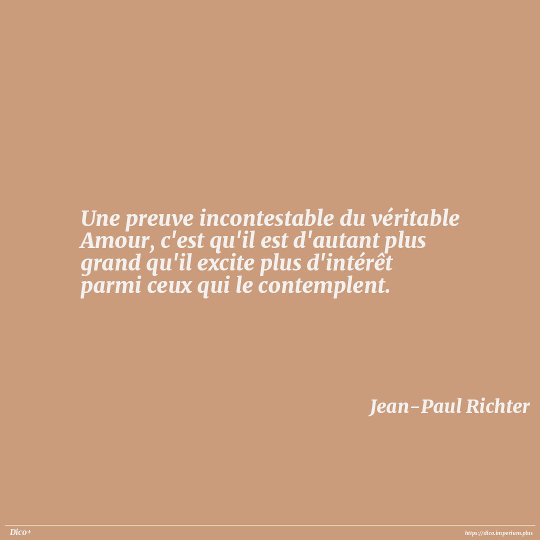 Une preuve incontestable du véritable Amour, c'est qu'il est d'autant plus grand qu'il excite plus d'intérêt parmi ceux qui le contemplent.