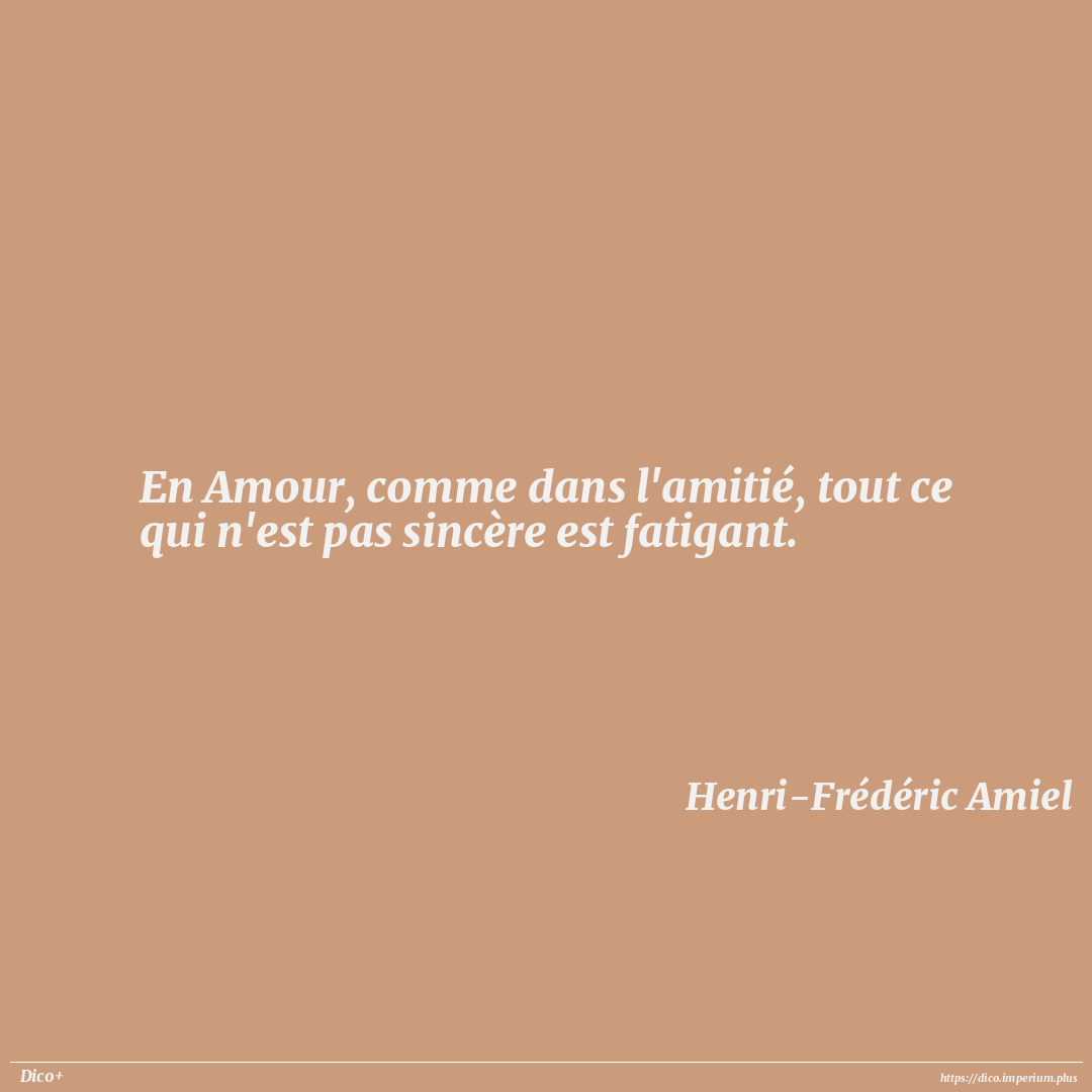 En Amour, comme dans l'amitié, tout ce qui n'est pas sincère est fatigant.