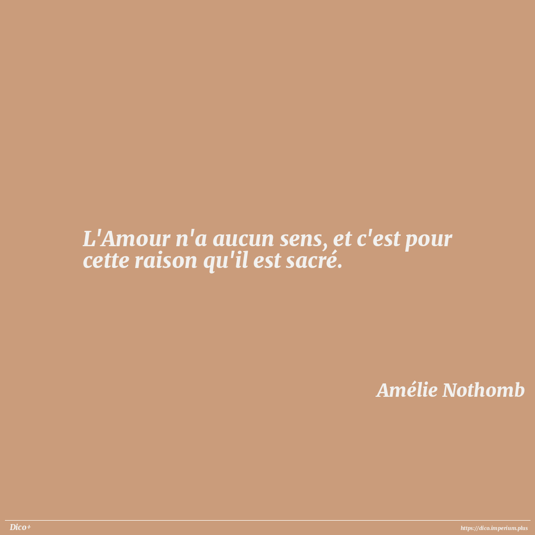L'Amour n'a aucun sens, et c'est pour cette raison qu'il est sacré.
