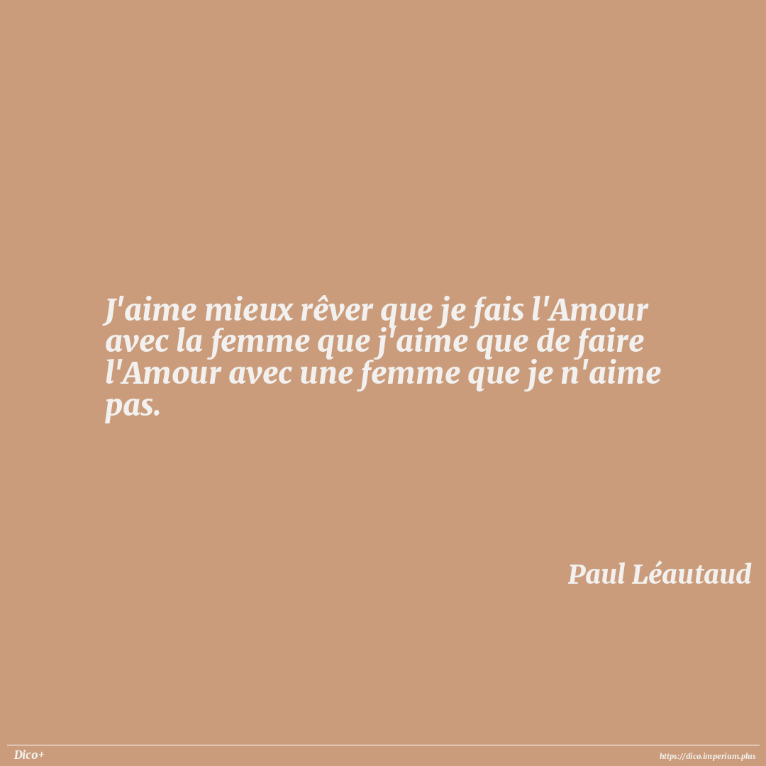 J'aime mieux rêver que je fais l'Amour avec la femme que j'aime que de faire l'Amour avec une femme que je n'aime pas.