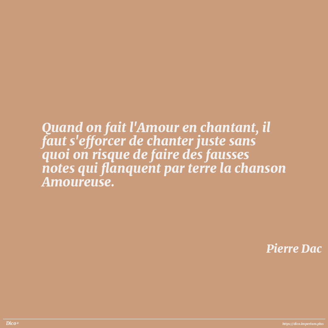 Quand on fait l'Amour en chantant, il faut s'efforcer de chanter juste sans quoi on risque de faire des fausses notes qui flanquent par terre la chanson Amoureuse.
