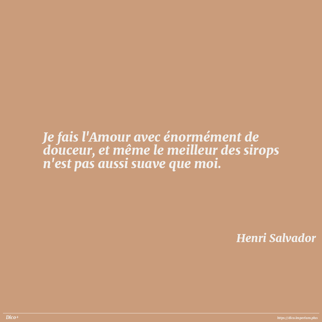 Je fais l'Amour avec énormément de douceur, et même le meilleur des sirops n'est pas aussi suave que moi.