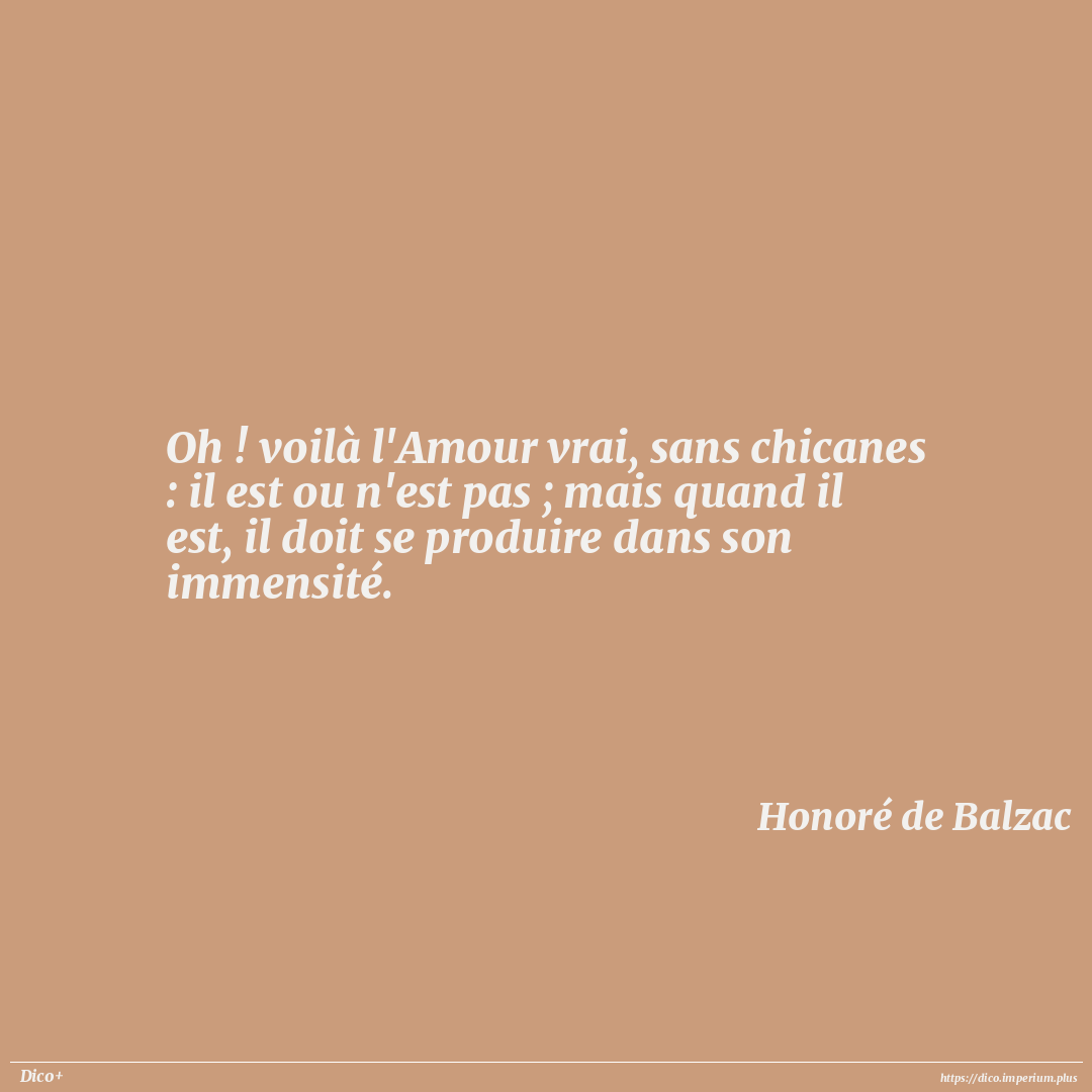 Oh ! voilà l'Amour vrai, sans chicanes : il est ou n'est pas ; mais quand il est, il doit se produire dans son immensité.