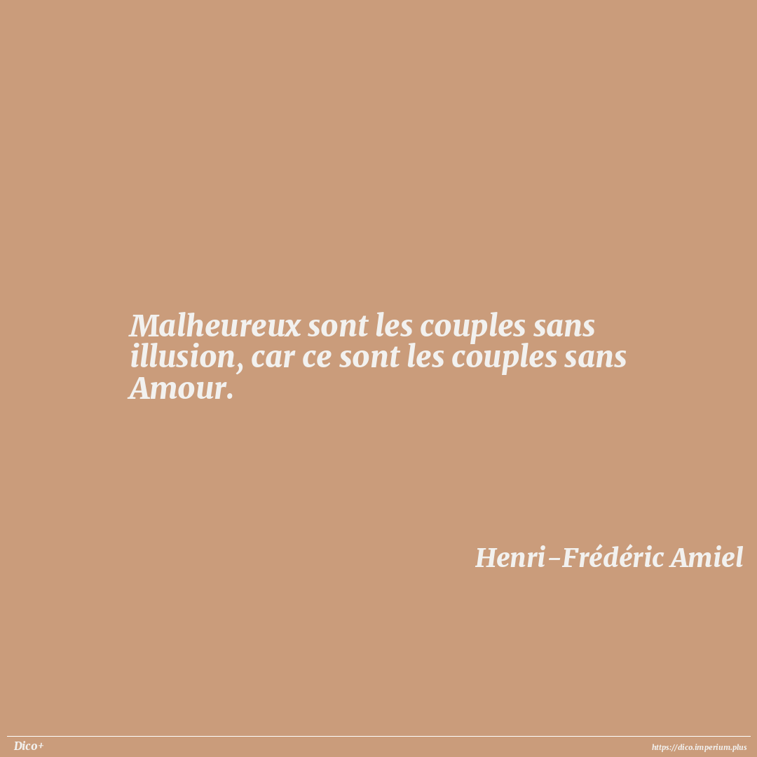 Malheureux sont les couples sans illusion, car ce sont les couples sans Amour.