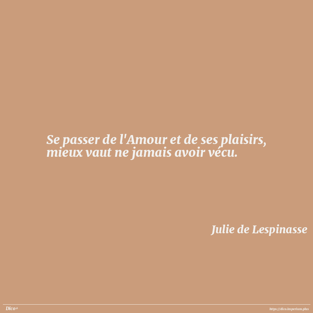Se passer de l'Amour et de ses plaisirs, mieux vaut ne jamais avoir vécu.