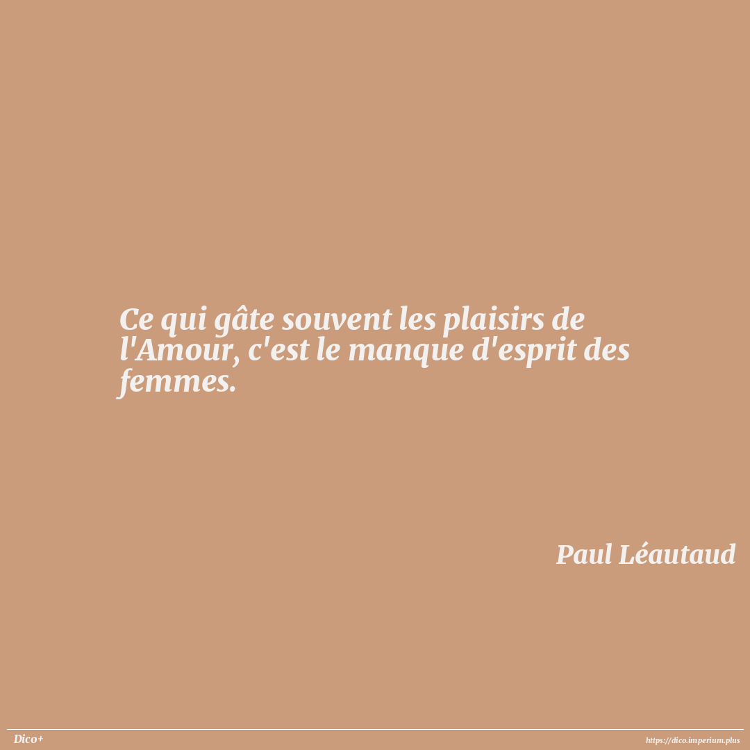 Ce qui gâte souvent les plaisirs de l'Amour, c'est le manque d'esprit des femmes.