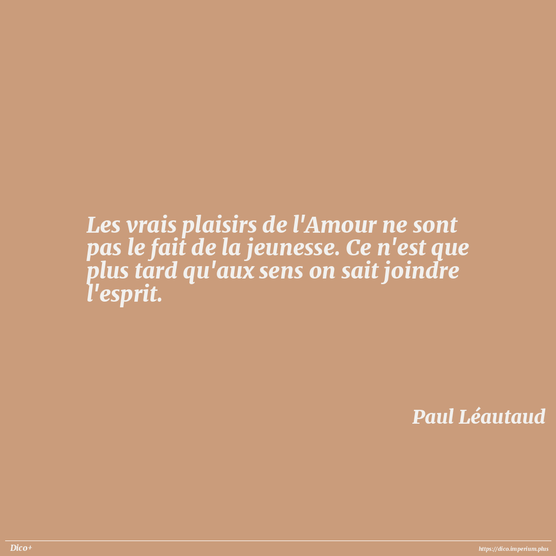 Les vrais plaisirs de l'Amour ne sont pas le fait de la jeunesse. Ce n'est que plus tard qu'aux sens on sait joindre l'esprit.