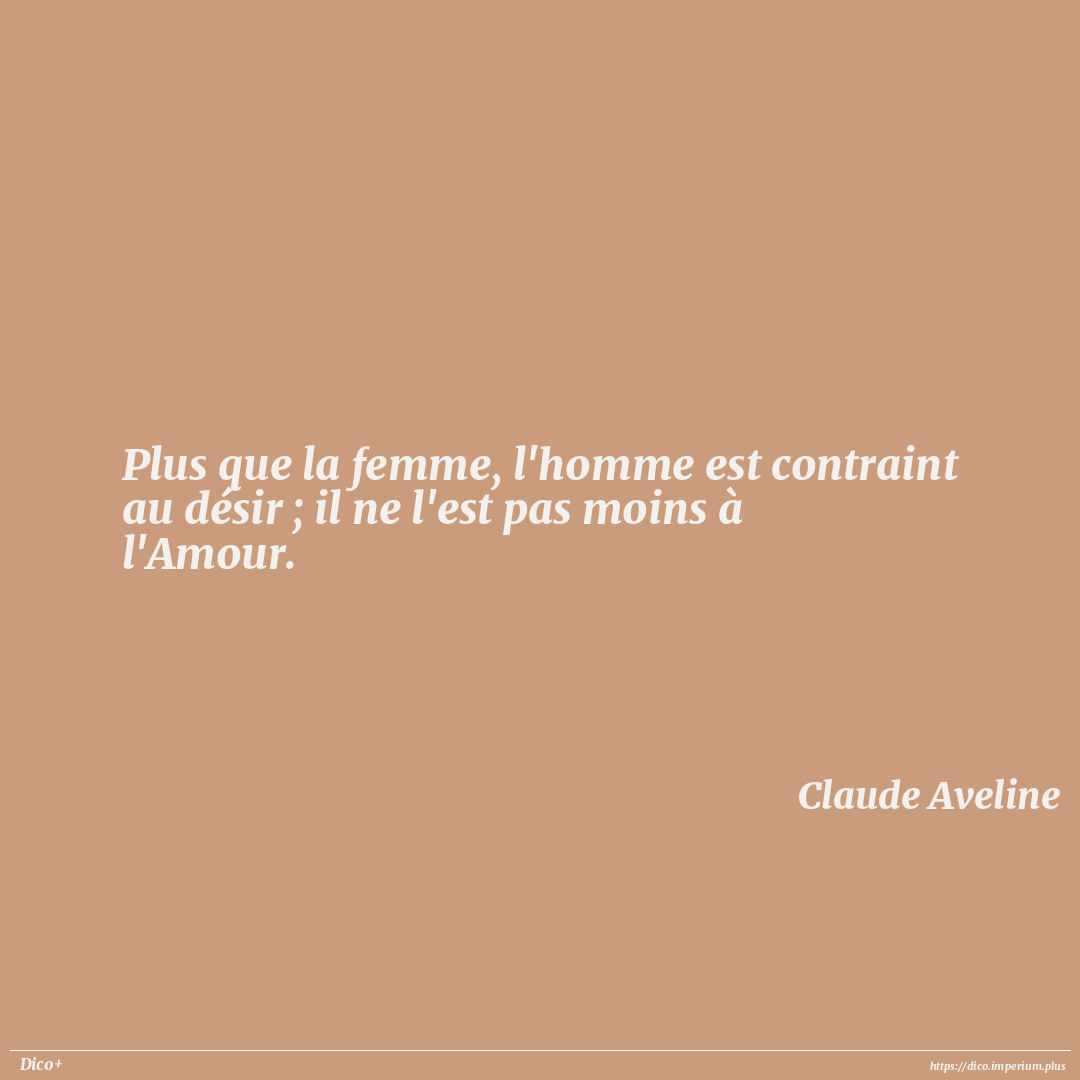 Plus que la femme, l'homme est contraint au désir ; il ne l'est pas moins à l'Amour.