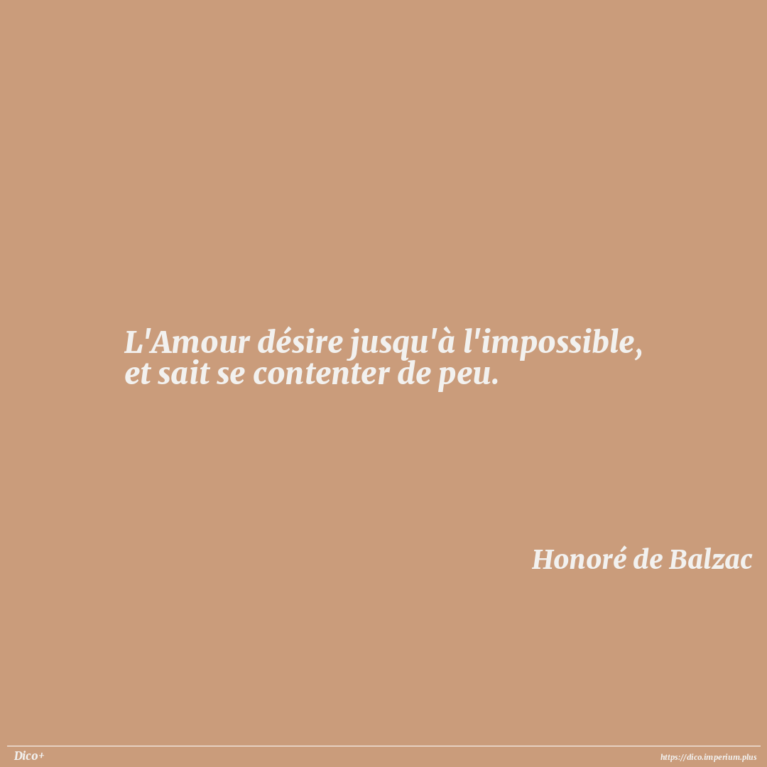 L'Amour désire jusqu'à l'impossible, et sait se contenter de peu.