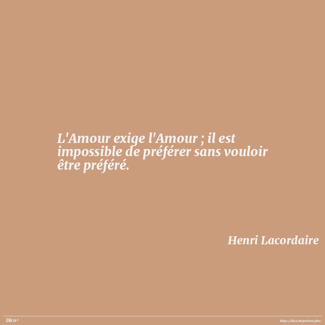 L'Amour exige l'Amour ; il est impossible de préférer sans vouloir être préféré.
