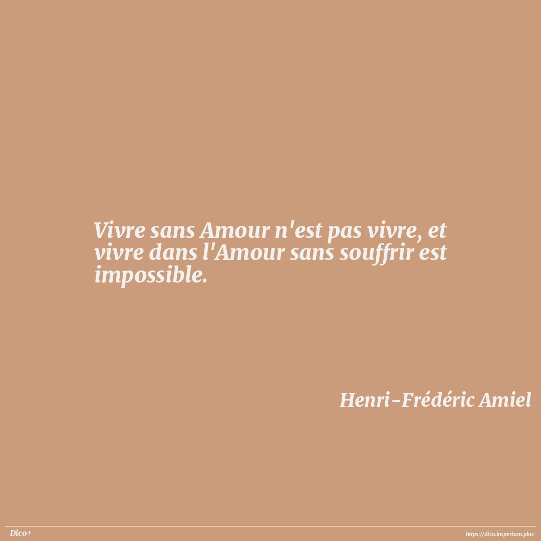 Vivre sans Amour n'est pas vivre, et vivre dans l'Amour sans souffrir est impossible.