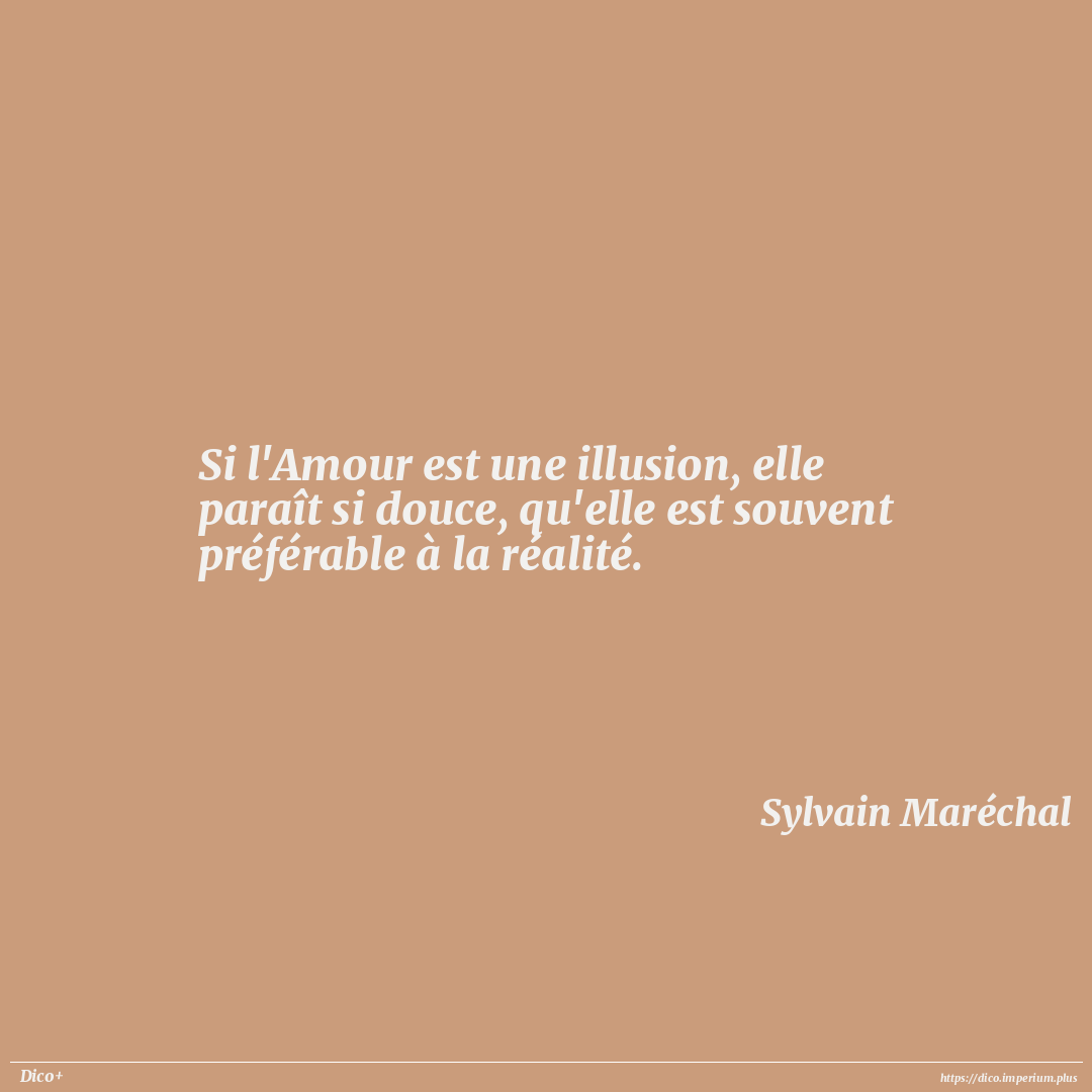 Si l'Amour est une illusion, elle paraît si douce, qu'elle est souvent préférable à la réalité.