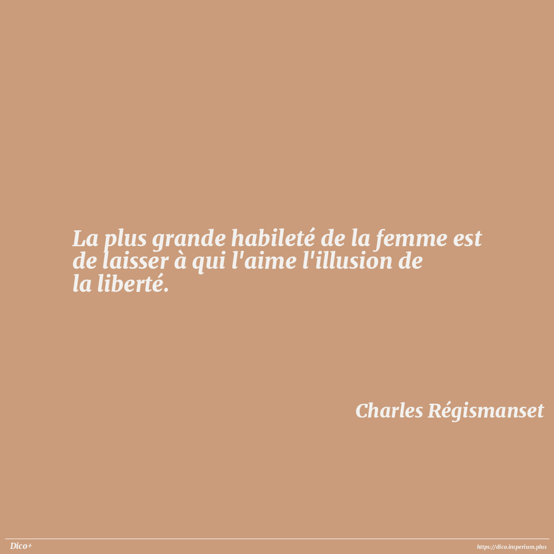 La plus grande habileté de la femme est de laisser à qui l'aime l'illusion de la liberté.