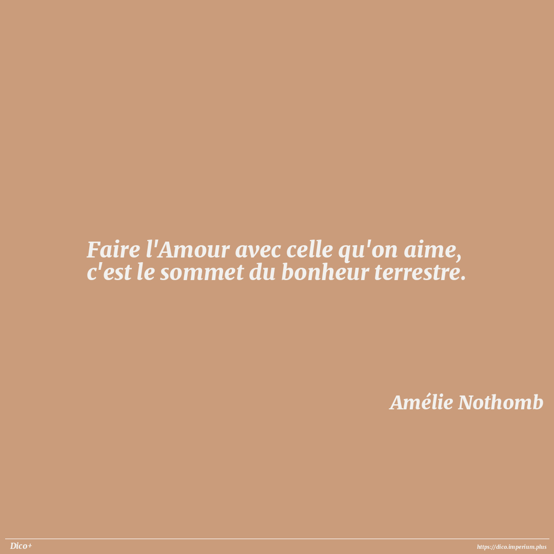 Faire l'Amour avec celle qu'on aime, c'est le sommet du bonheur terrestre.