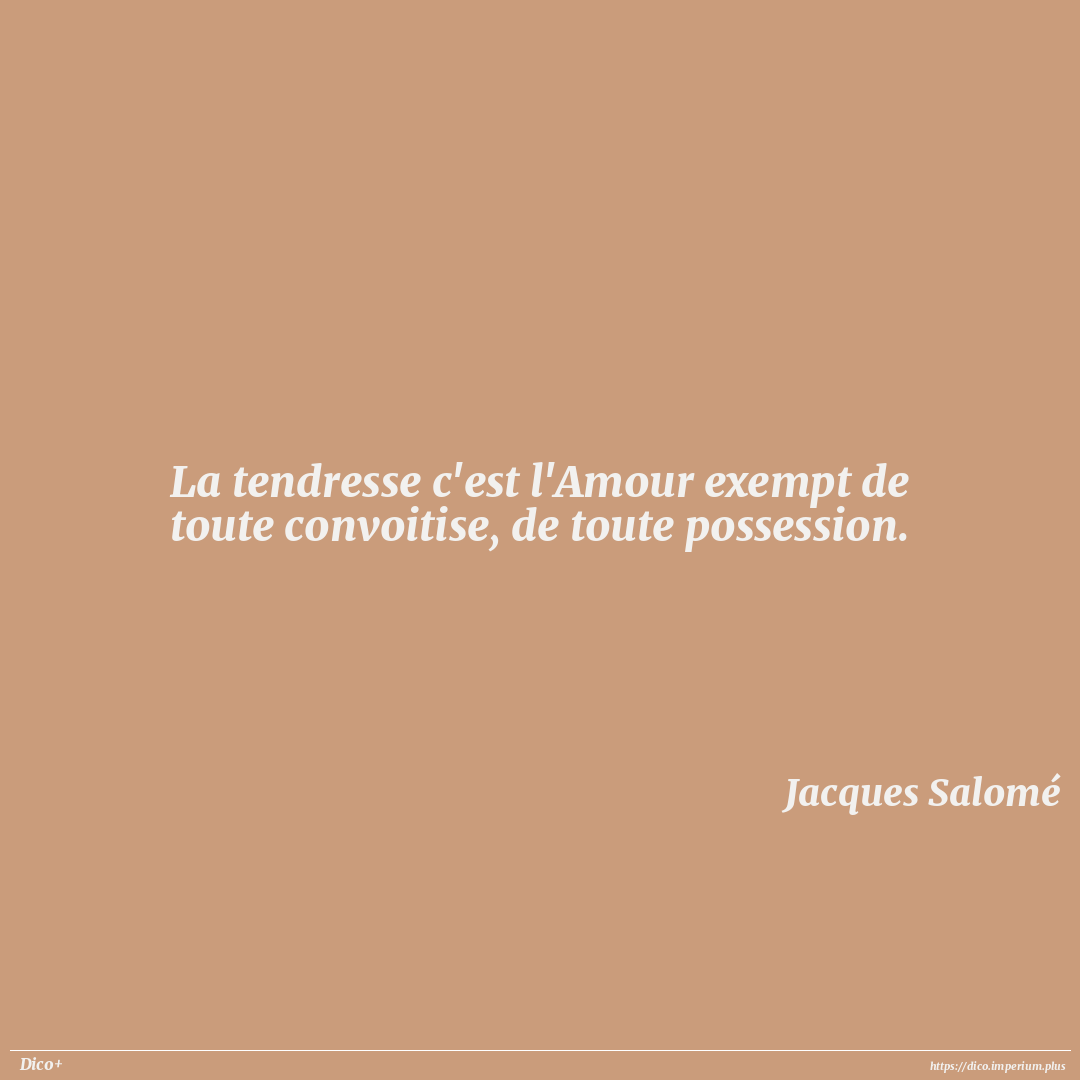 La tendresse c'est l'Amour exempt de toute convoitise, de toute possession.