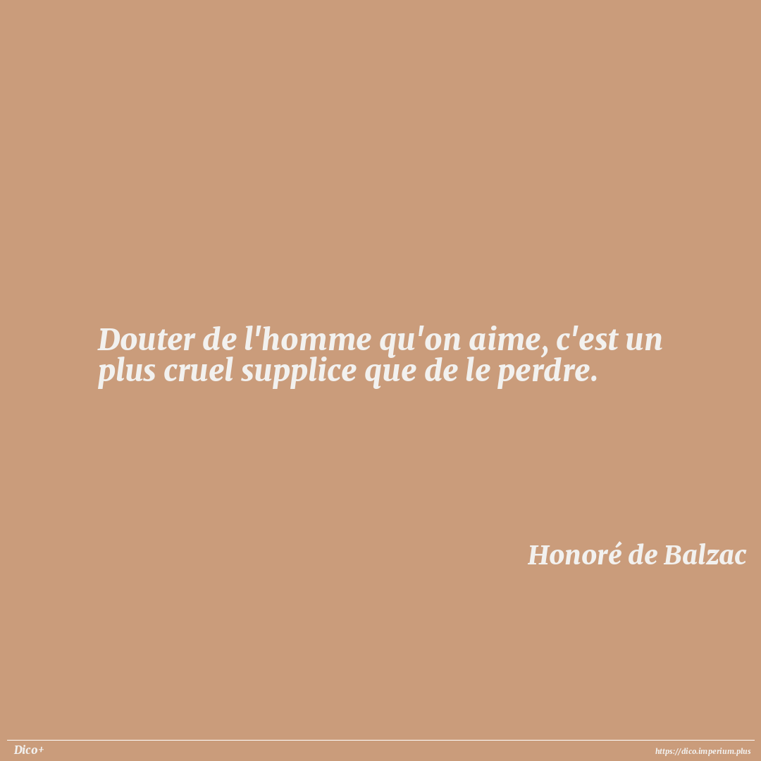 Douter de l'homme qu'on aime, c'est un plus cruel supplice que de le perdre.