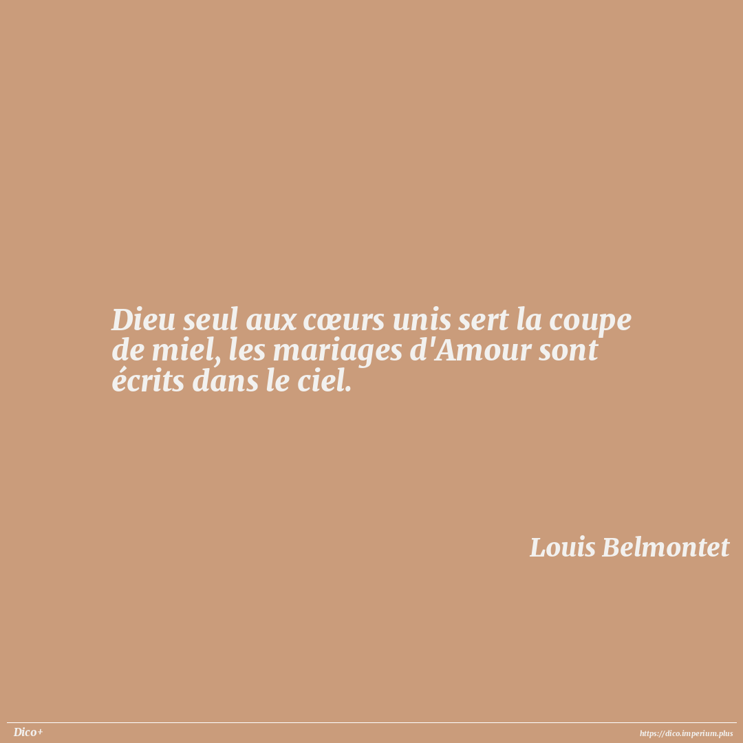Dieu seul aux cœurs unis sert la coupe de miel, les mariages d'Amour sont écrits dans le ciel.