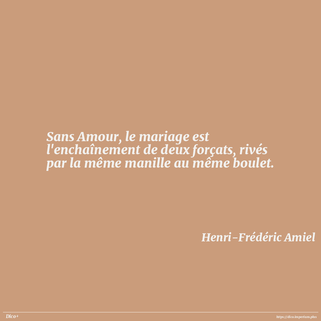 Sans Amour, le mariage est l'enchaînement de deux forçats, rivés par la même manille au même boulet.