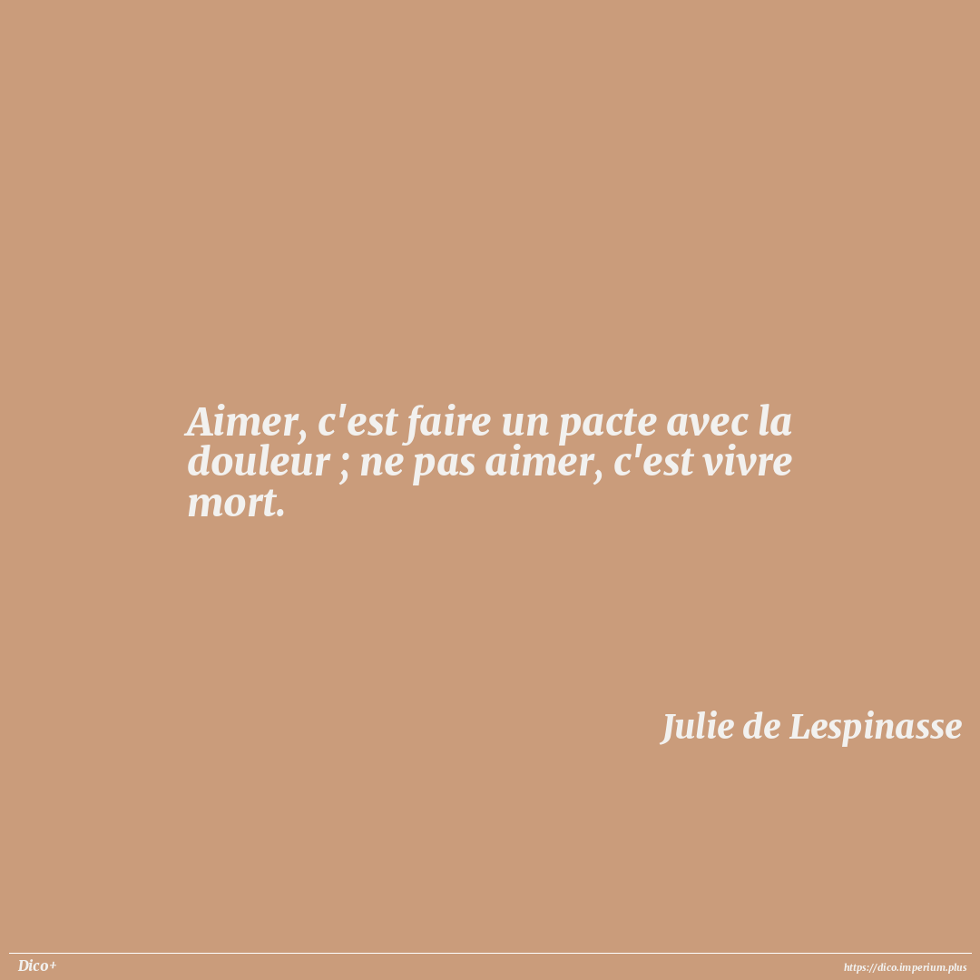 Aimer, c'est faire un pacte avec la douleur ; ne pas aimer, c'est vivre mort.