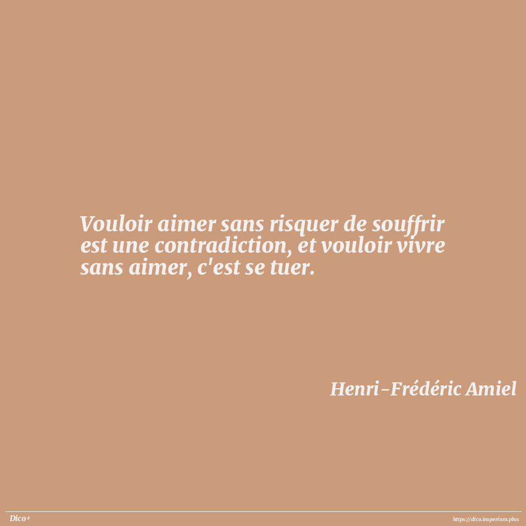 Vouloir aimer sans risquer de souffrir est une contradiction, et vouloir vivre sans aimer, c'est se tuer.