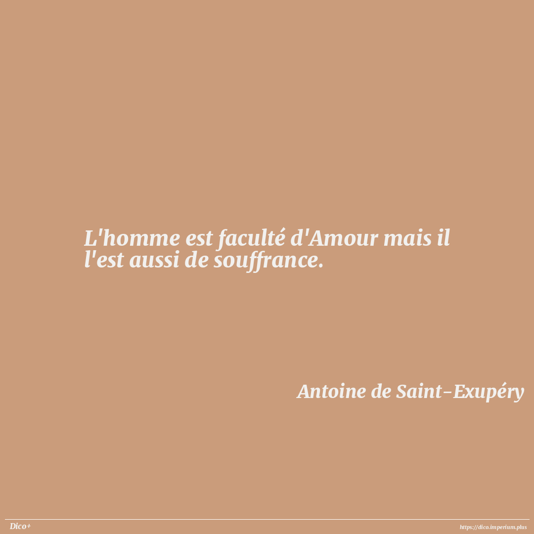 L'homme est faculté d'Amour mais il l'est aussi de souffrance.