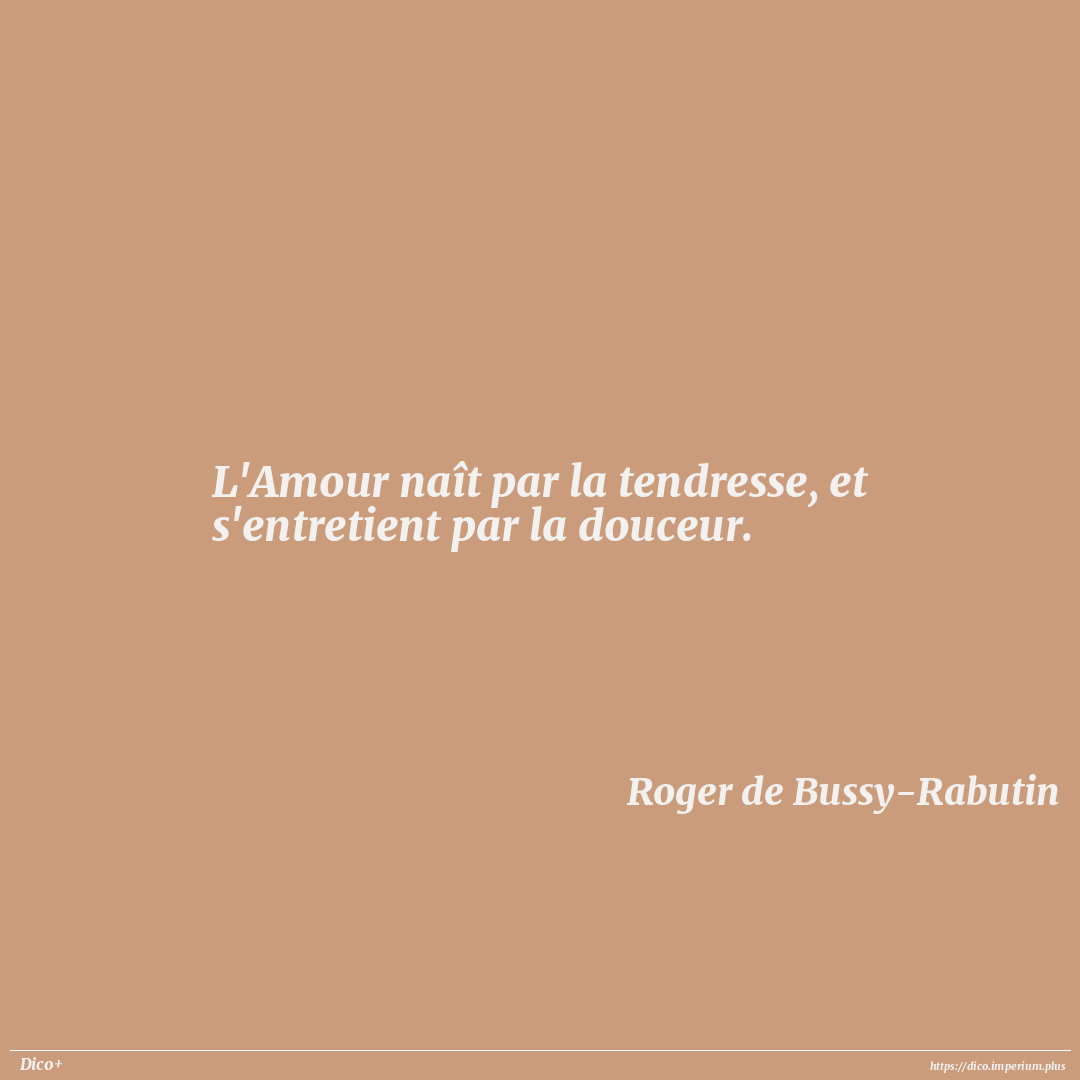 L'Amour naît par la tendresse, et s'entretient par la douceur.