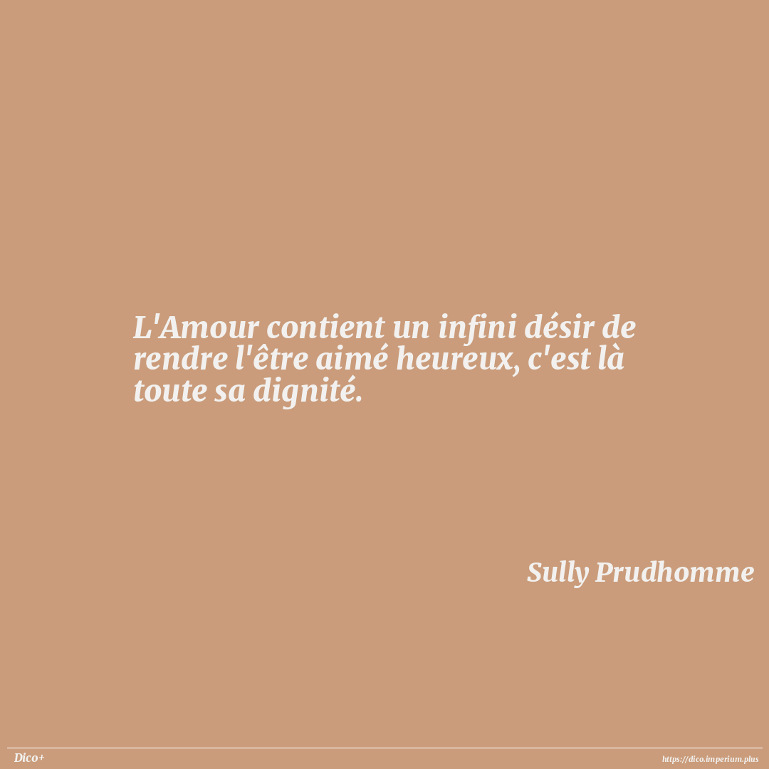 L'Amour contient un infini désir de rendre l'être aimé heureux, c'est là toute sa dignité.