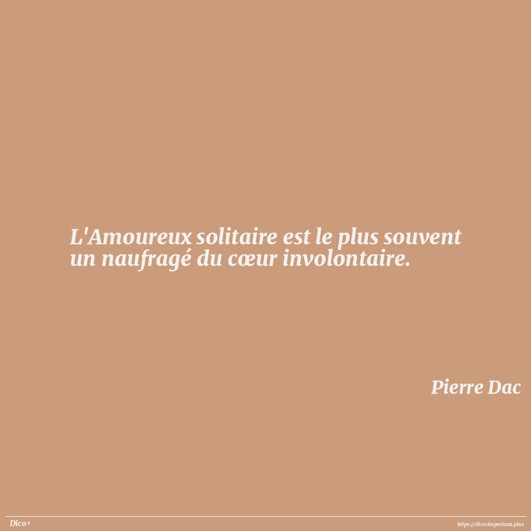 L'Amoureux solitaire est le plus souvent un naufragé du cœur involontaire.