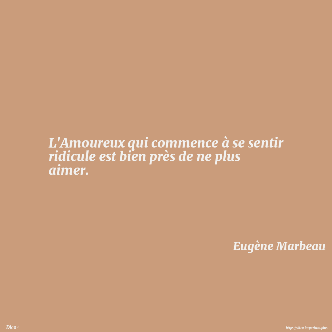 L'Amoureux qui commence à se sentir ridicule est bien près de ne plus aimer.