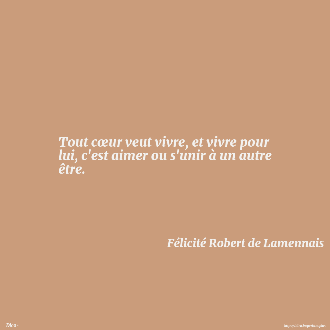 Tout cœur veut vivre, et vivre pour lui, c'est aimer ou s'unir à un autre être.