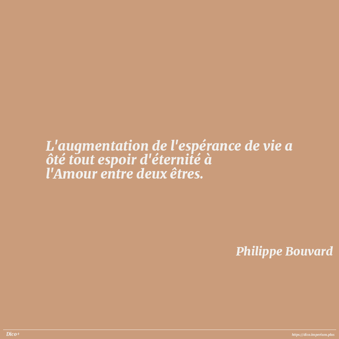 L'augmentation de l'espérance de vie a ôté tout espoir d'éternité à l'Amour entre deux êtres.