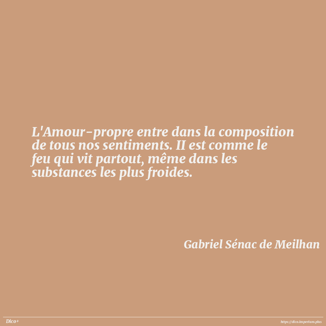 L'Amour-propre entre dans la composition de tous nos sentiments. II est comme le feu qui vit partout, même dans les substances les plus froides.