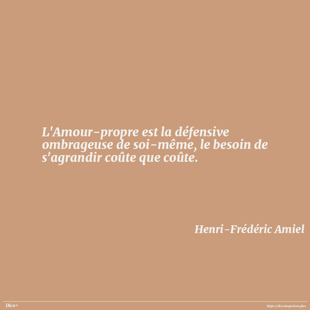 L'Amour-propre est la défensive ombrageuse de soi-même, le besoin de s'agrandir coûte que coûte.
