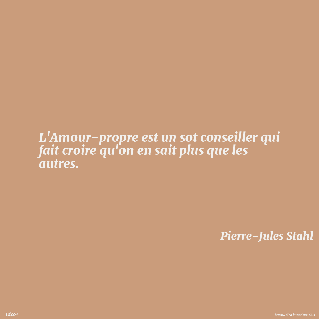 L'Amour-propre est un sot conseiller qui fait croire qu'on en sait plus que les autres.